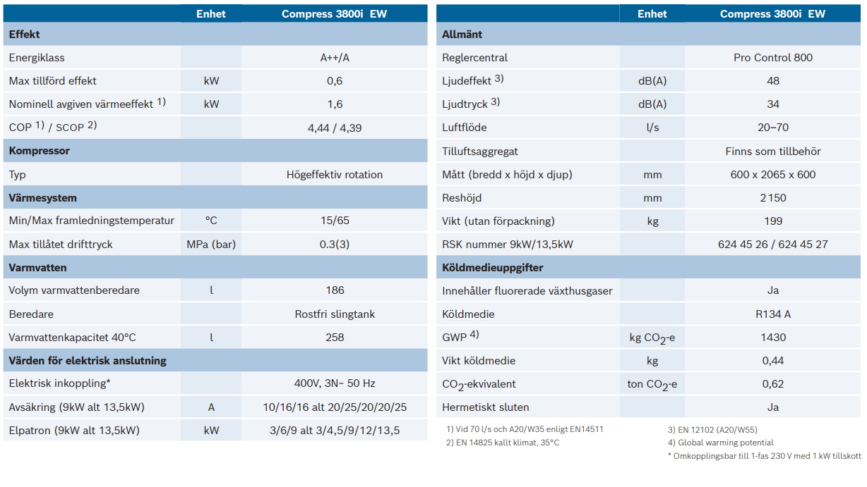 En helt nyutvecklad frånluftsvärmepump med den senaste tekniken och ett styrsystem som kontinuerligt anpassar driften efter önskat värme- och varmvattenbehov. Den moderna konstruktionen tillsammans med den rostfria varmvattenberedaren ger även god tillgång på varmvatten. Lämplig för boyta 120-180m²