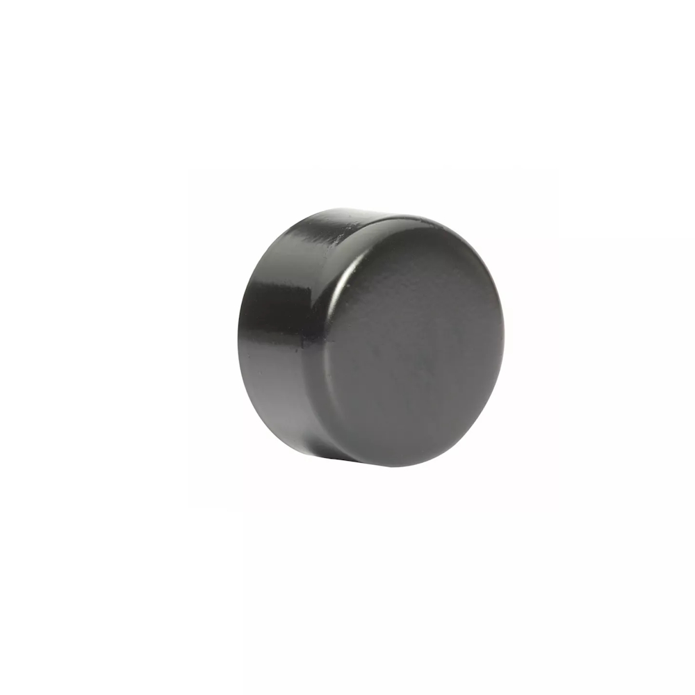 Ändknopp i svart metall, diameter 48x25mm, som passar till ledstången i Ekeröserien (artikelnummer 25466). Ekerö är en modern metallräckesserie som passar lika bra inne som ute. Serien kommer i två utförande, golvmontering eller sidomontering. I förpackningen ingår ett par ändknoppar. Ekerö är galvaniserat, zinkgrundat och färdigmålat med svart pulverlack vilket ger en hållbar yta.