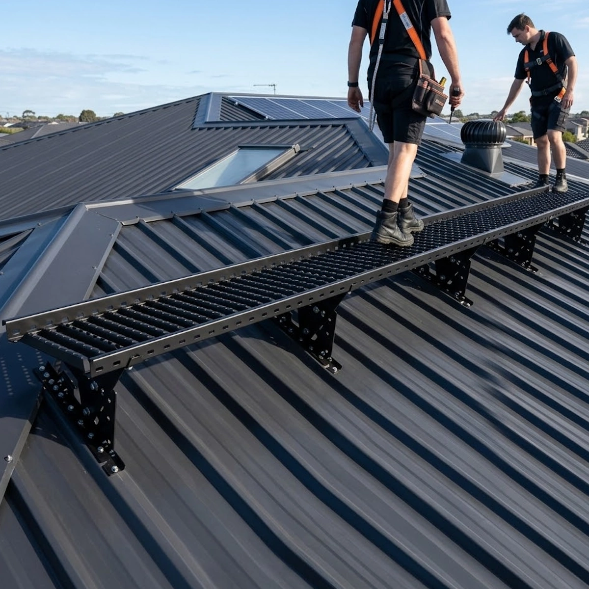 Maximera säkerheten på taket med ett komplett paket för takbrygga i elegant svart finish. Denna extra långa sektion på 2,4 meter är specifikt framtagen för profilerat plåttak. Systemet är modulärt, vilket gör det enkelt att kombinera flera paket för att skapa en trygg och stabil gångväg över hela takytan.