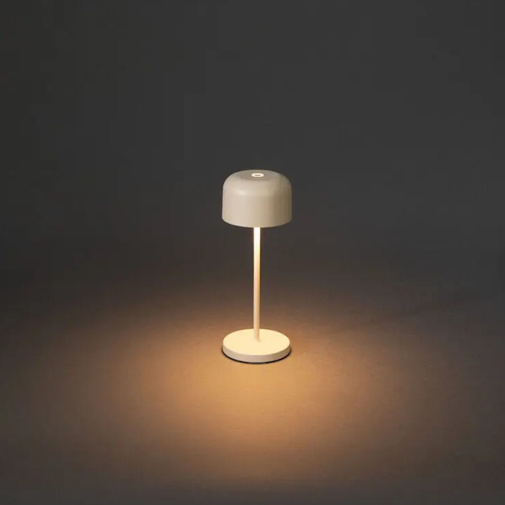 Lille mini är en trevlig, uppladdningsbar loungelampa med batteritid på ca 9 timmar vid full ljusstyrka. Den passar lika bra inne i vardagsrummet som på uteplatsen. Laddas via USB och är dimbar och ställbar med färgtemperatur mellan 2200K eller 2700K. Av/på knapp i touch uppe på skärmen. Sandfärgad lackad aluminium.