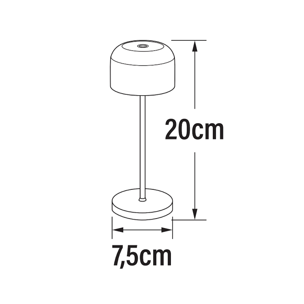 Lille mini är en trevlig, uppladdningsbar loungelampa med batteritid på ca 9 timmar vid full ljusstyrka. Den passar lika bra inne i vardagsrummet som på uteplatsen. Laddas via USB och är dimbar och ställbar med färgtemperatur mellan 2200K eller 2700K. Av/på knapp i touch uppe på skärmen. Svartlackad aluminium.