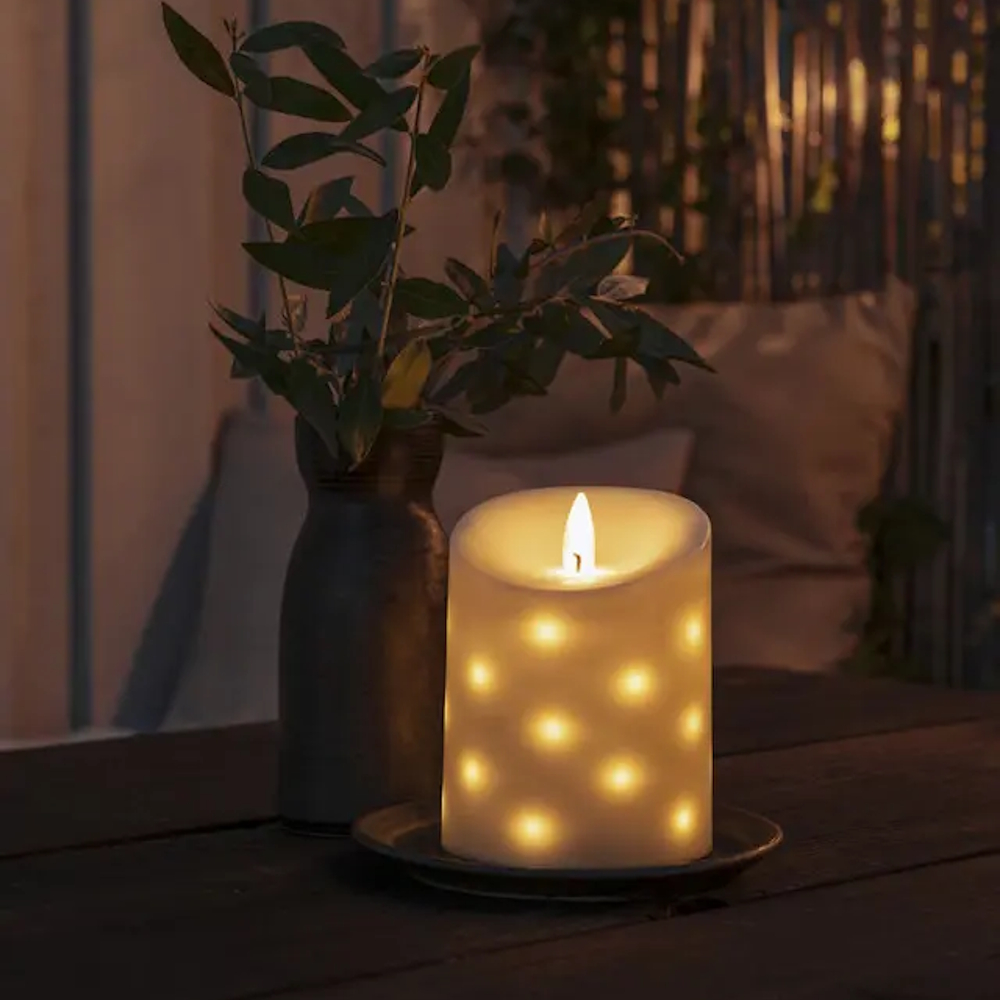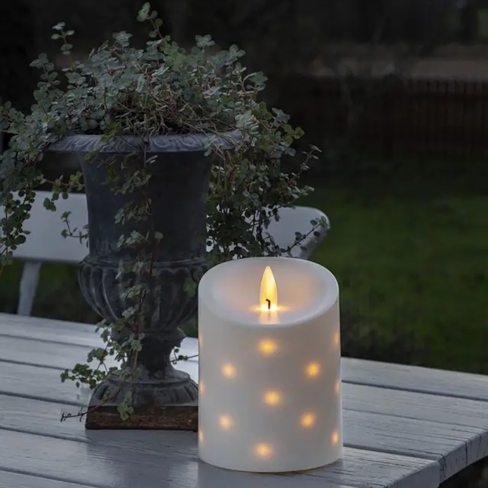 Stämningsfullt vitt batteriljus för utomhusbruk, perfekt i trädgårdens lyktor eller som vacker dekoration vid graven.