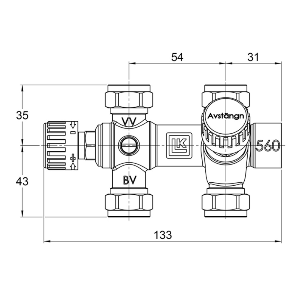 LK 560 AquaKit är en ventilkombination som passar till varmvattenberedare med c/c 54mm mellan anslutningsrören.