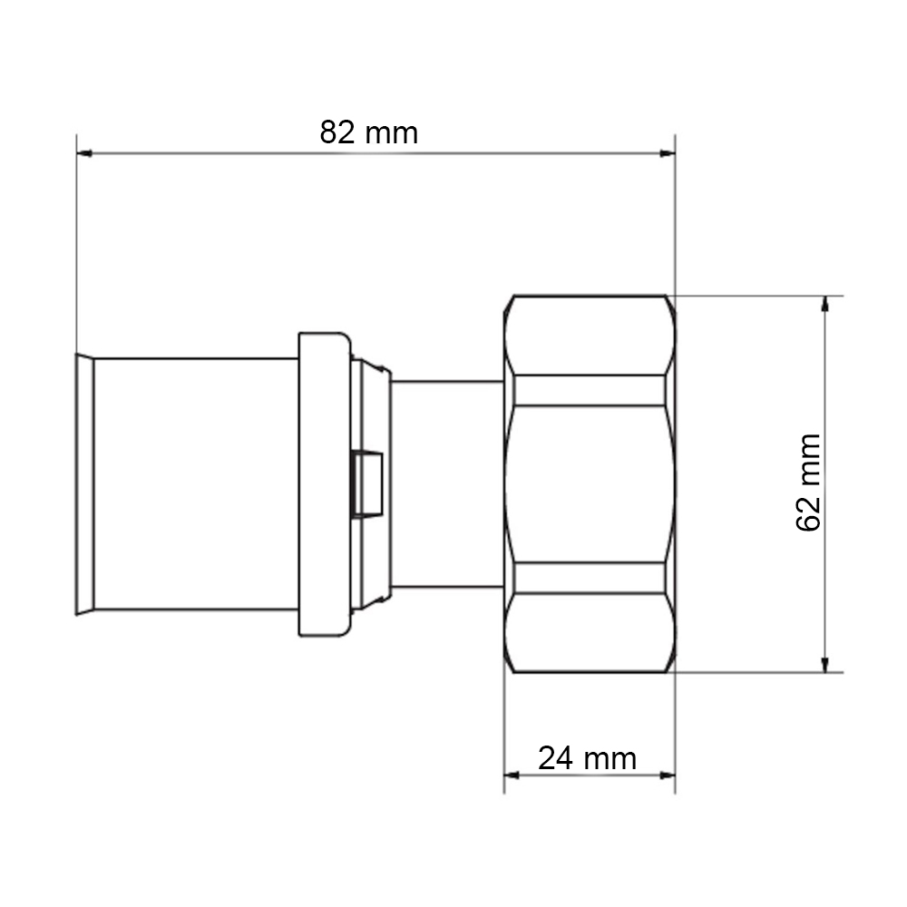 Presskoppling för sammanfogning av LK PAL samt LK PE-X Universalrör. Kopplingen har metallisk tätning mot LK Kulventil hög hals, M-Gänga som finns i motsvarande dimension M26 - M70. Alla dimensioner har gult kopplingshus.