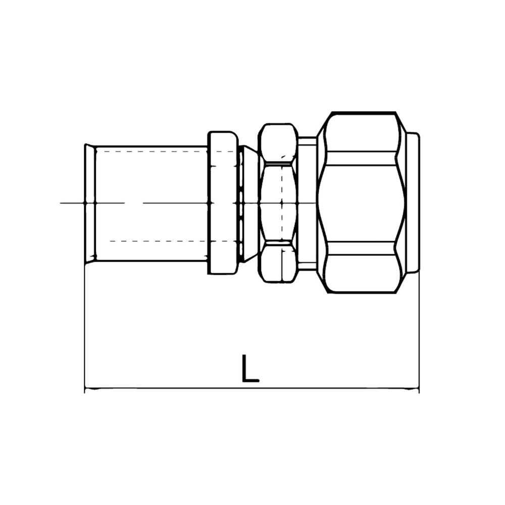 Rak PressPex-koppling för LK PE-X och PAL Universalrör 16, På andra sidan finns klämringskoppling för kopparrör till t.ex.