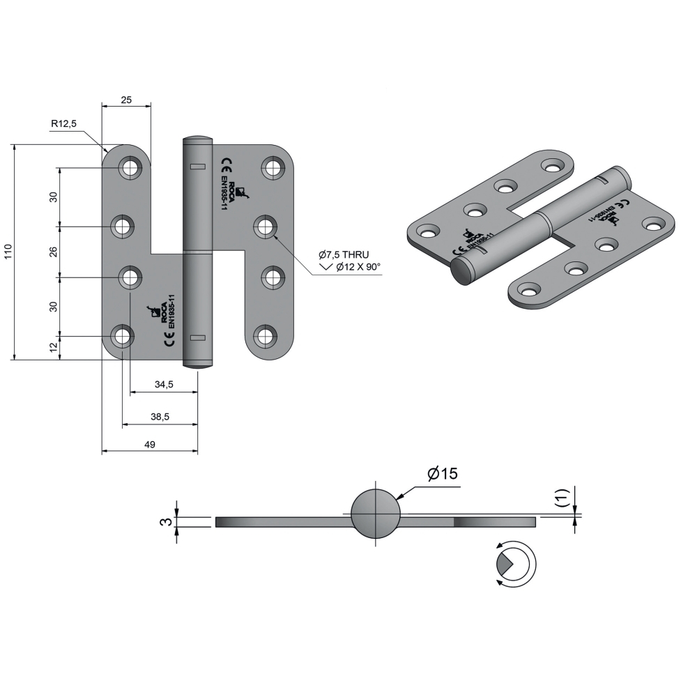 Lyftgångjärn 3228 rostfri A4, skruvar medföljer.