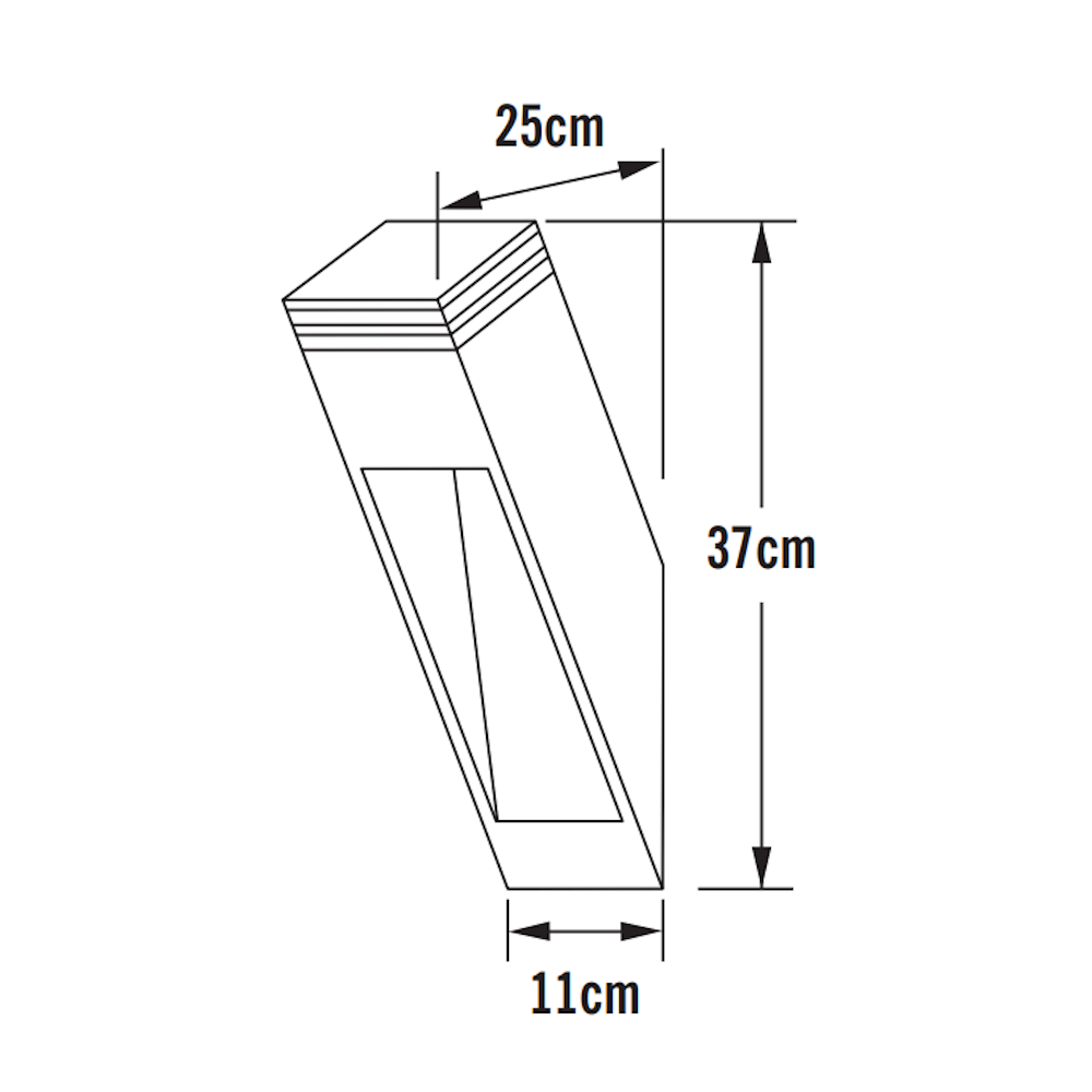 Fasadbelysningen Massa i mörkgrå lackad aluminium med klart polykarbonat glas. Integrerad LED på 2x8W. Motsvarande 800 Lumen. [Energiklass F]