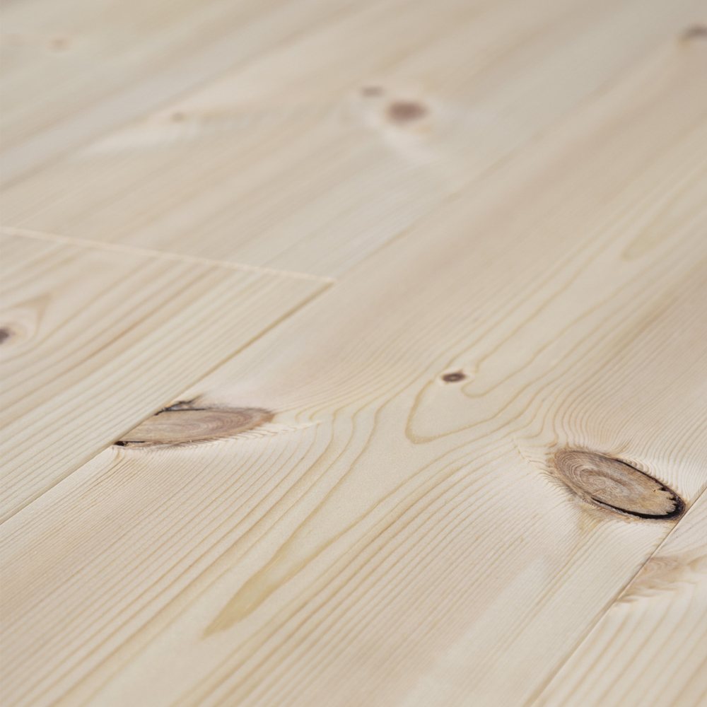SoftPine Not treated är massivt och obehandlat furugolv med kvistar i varierande storlek och struktur. A-kvalitet 1:a sortering.