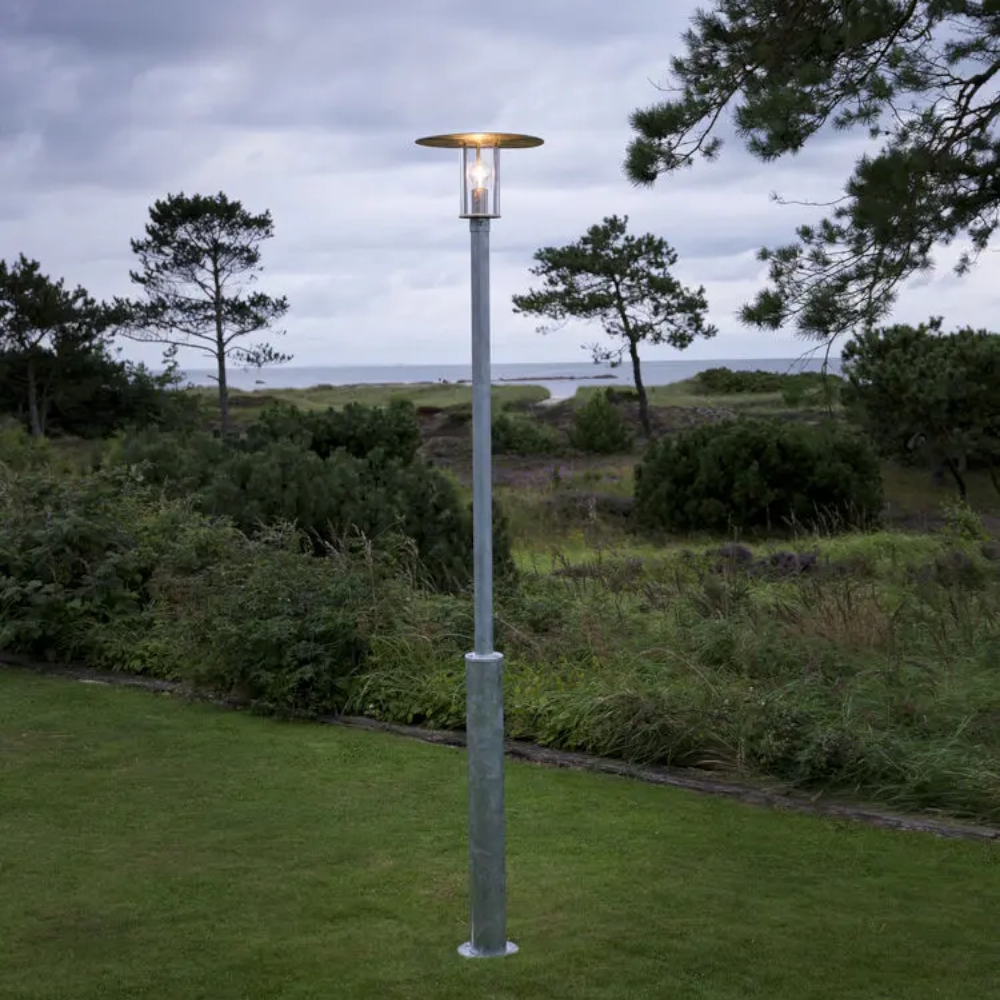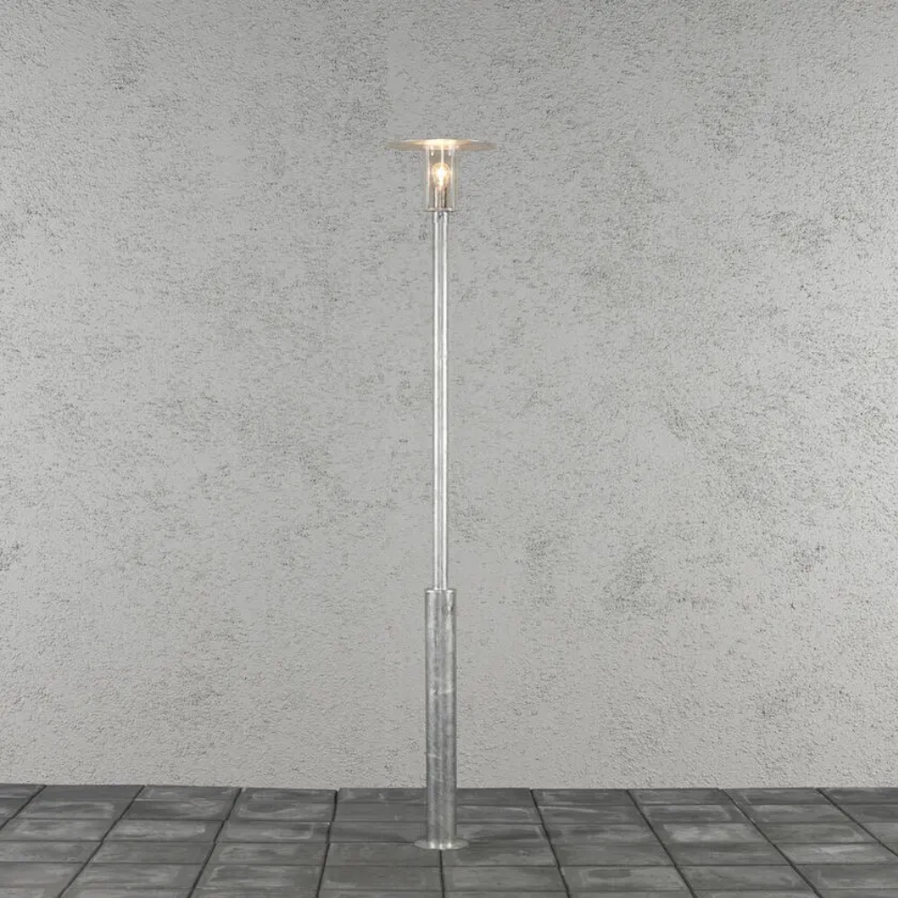 Mode Lyktstolpe i galvaniserat stål med klart glas, en modern och hållbar utomhusbelysning för trädgård, uppfart eller entré.