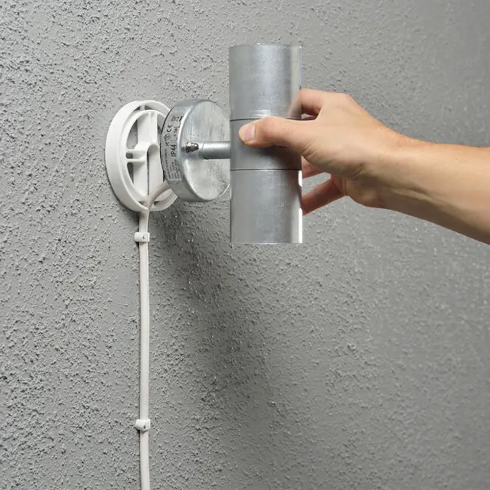 Monteringsdistans Utanpåliggande är en praktisk distans för utanpåliggande montage av Konstsmides väggbelysning.