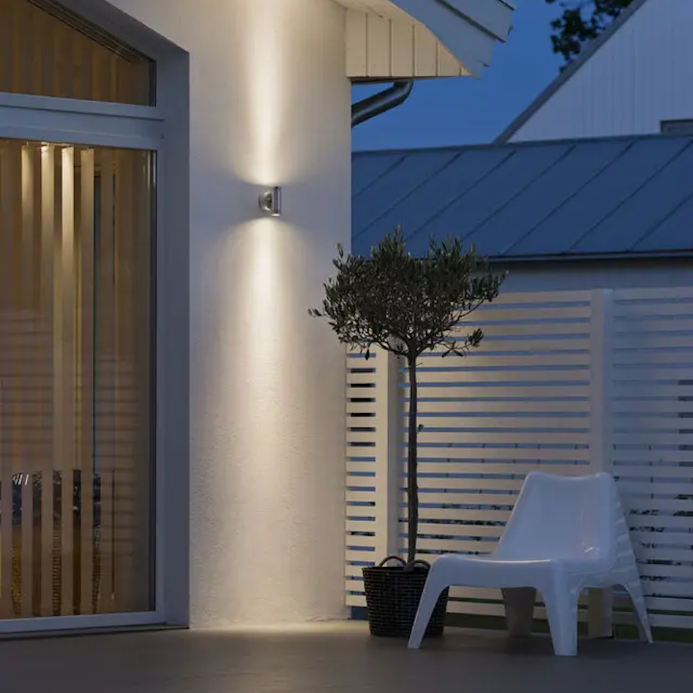 Monza vägglampa från Konstsmide är en stilren och modern vägglampa som sprider ett fint ljus och avger en fin ljusbild på din fasad. Vägglampan lyser både uppåt och nedåt och gör sig lika bra enkel utanför ytterdörren eller sätt flera stycken på rad längs din fasad och skapa en riktigt mysig och välkomnande utemiljö!
