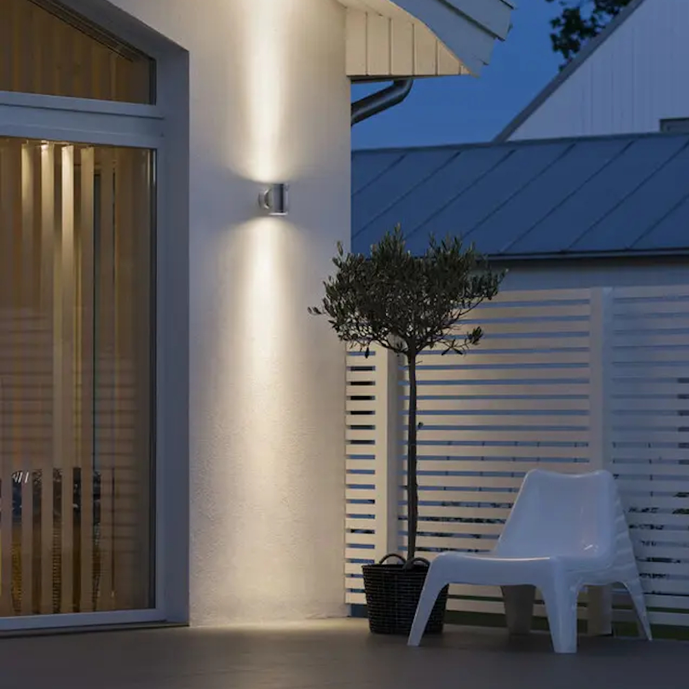 Monza vägglampa från Konstsmide är en stilren och modern vägglampa som sprider ett fint ljus och avger en fin ljusbild på din fasad. Vägglampan lyser både uppåt och nedåt och gör sig lika bra enkel utanför ytterdörren eller sätt flera stycken på rad längs din fasad och skapa en riktigt mysig och välkomnande utemiljö!