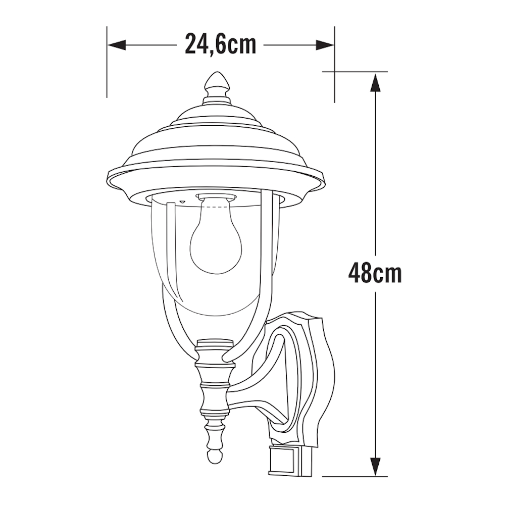 Parma fasadbelysning med rörelsevakt/sensor i grönlackad aluminium med klart glas. En klassisk och hållbar utomhusbelysning med vackra detaljer som förstärker husets karaktär. E27-sockel. Ljuskälla ingår ej.
