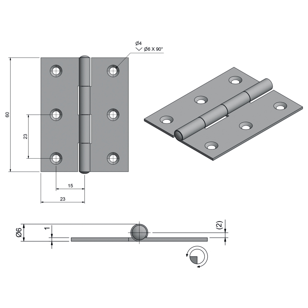 Plåtgångjärn 60x46mm Rostfri A4 5st Bårebo 811717