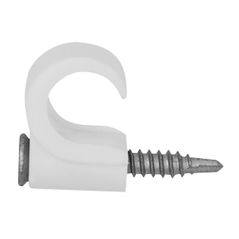 Halogenfri plåtklammer för montering av kablar i de flesta grundmaterial, plåtklammer för runda kablar 18-22 mm.