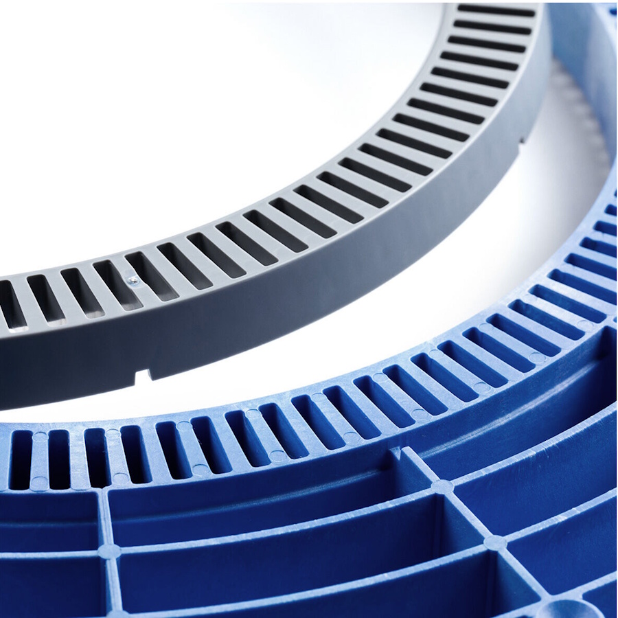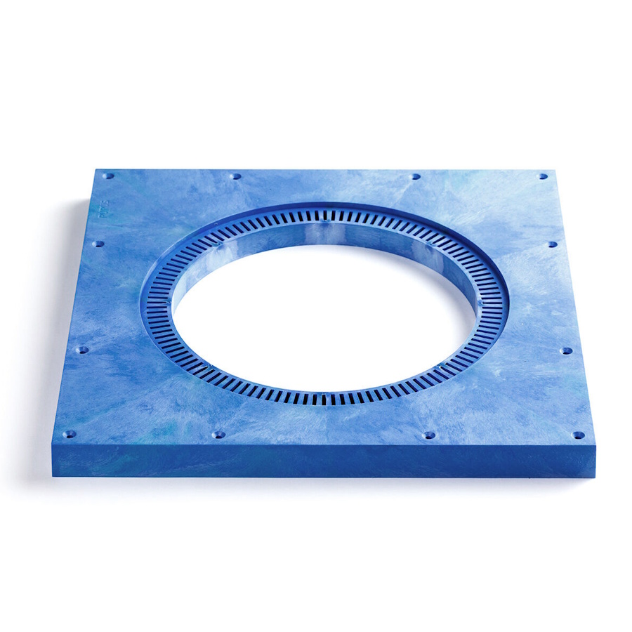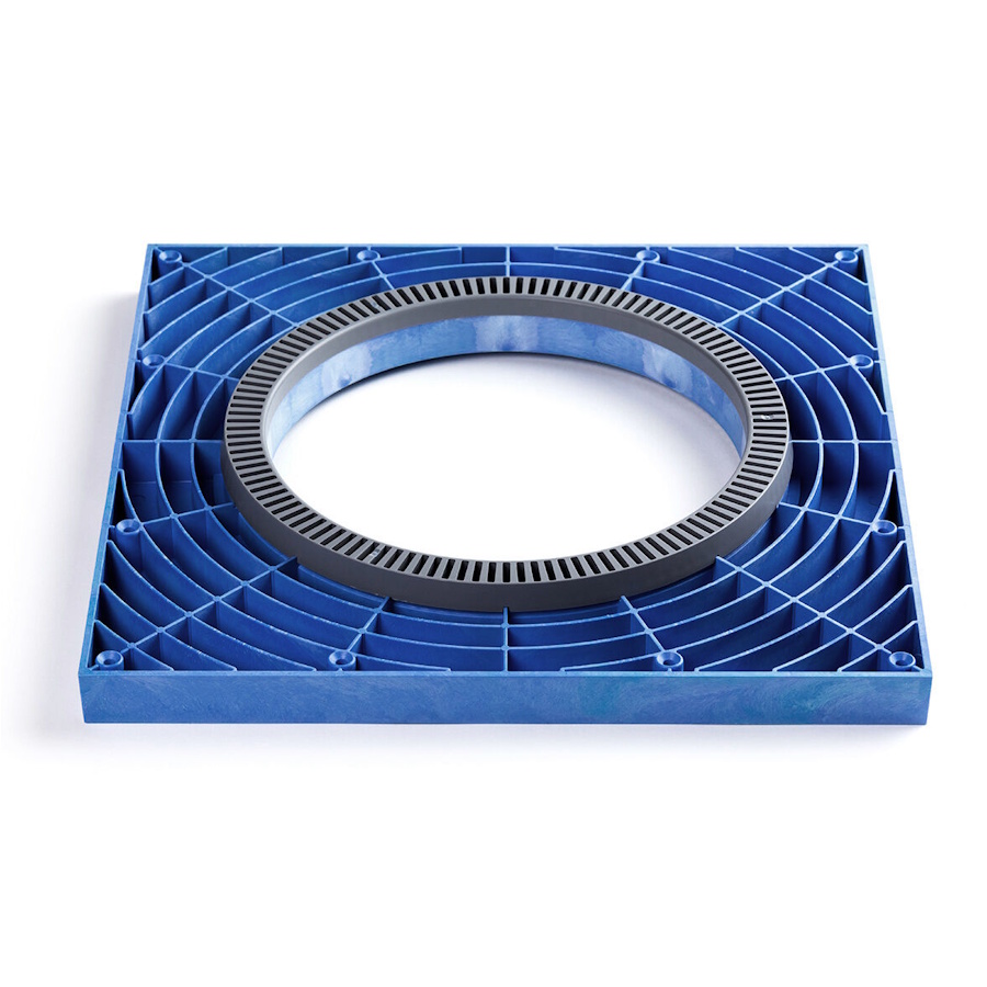 Monteringsplatta Utgård i plast används tillsammans med Purus golvbrunnar vid installation i träbjälklag.