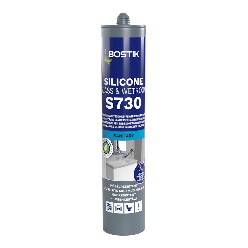 Bostik S730 Silicone Glass & Wetroom är speciellt utvecklad för hållbara elastiska fogar i badrum, duschar, våtrumsmatta, fönstertätning, samt industriella tillämpningar.