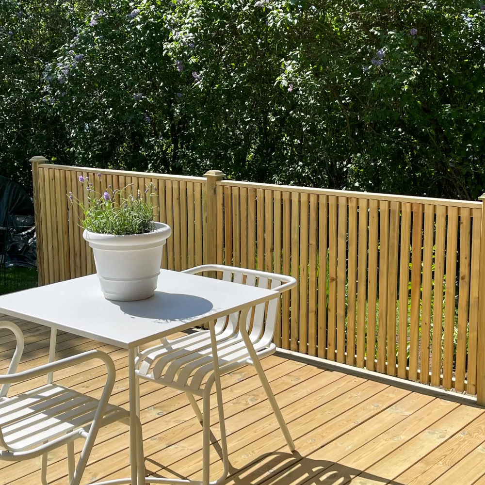 En stilren och funktionell skärmvägg i tryckimpregnerad gran som mäter 159x89 cm, perfekt för att förvandla din uteplats till ett vackert och ombonat uterum. Denna FSC-certifierade skärmserie från Jabo kännetecknas av sin moderna, ribbade design som passar utmärkt till både den klassiska sommarstugan och den samtida villan. Tack vare det hållbara materialet och den vertikala utformningen kan du inreda din trädgård mer dynamiskt än tidigare, oavsett om målet är att bygga ett effektivt insynsskydd, skapa en snygg soptunnegömma eller rama in altanen för en privat känsla. Med fokus på hög kvalitet och nordisk estetik erbjuder Skärm Vertikal 2 en flexibel lösning för alla typer av avskärmningsbehov utomhus, samtidigt som den tryckimpregnerade ytan säkerställer ett långvarigt skydd mot väder och vind.