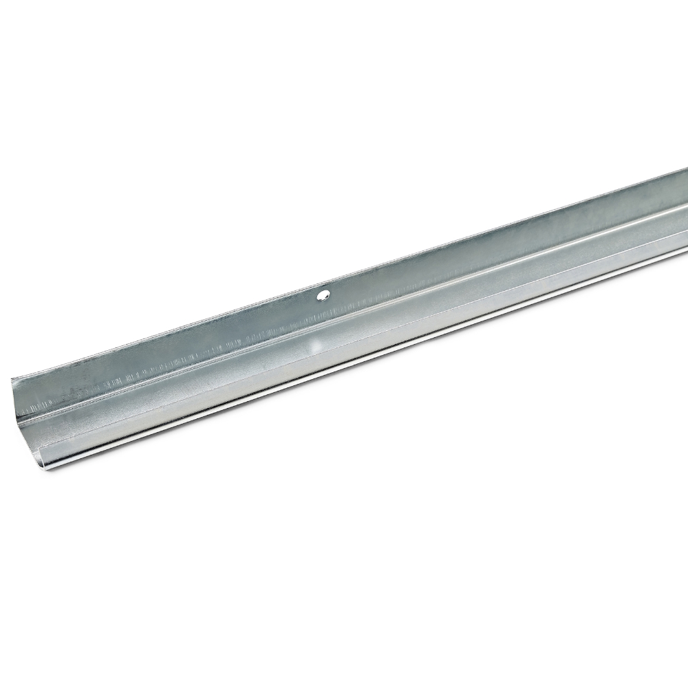 Skjutdörrsskena av stål med en längd på 3 meter. Avsedd för dörrar med en vikt upp till 30kg och en tjocklek på 12–35mm. Endast för takmontering eller annan konstruktion som möjliggör förskruvning uppåt. Förborrade hål. Avsedd för Beslagssats SF-30.