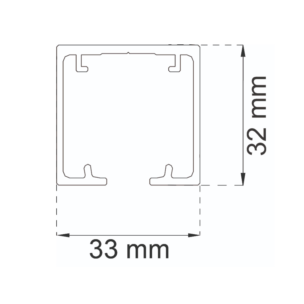 Skjutdörrsskena av aluminium med förborrade hål och en längd på 2 meter, avsedd för dörrar med en vikt upp till 70 kg.
