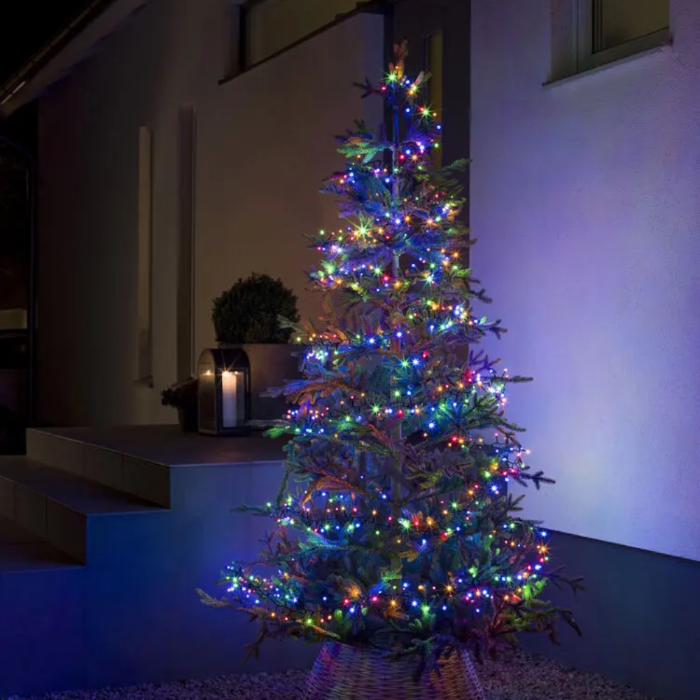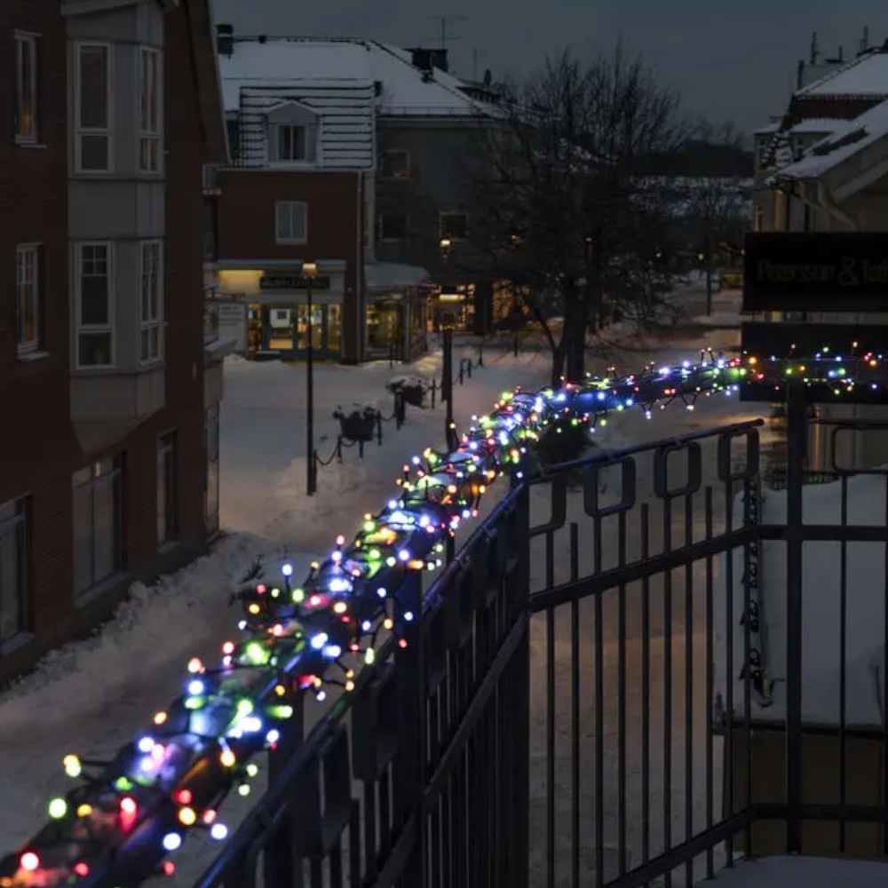 Färgglad ljusslinga i klusterformat med LED‑lampor i mjuka pastelltoner som rosa, turkos och gult. Sprider en lekfull och stämningsfull känsla, perfekt för uteplatsen, inomhus eller som en färgstark detalj i juldekorationen.