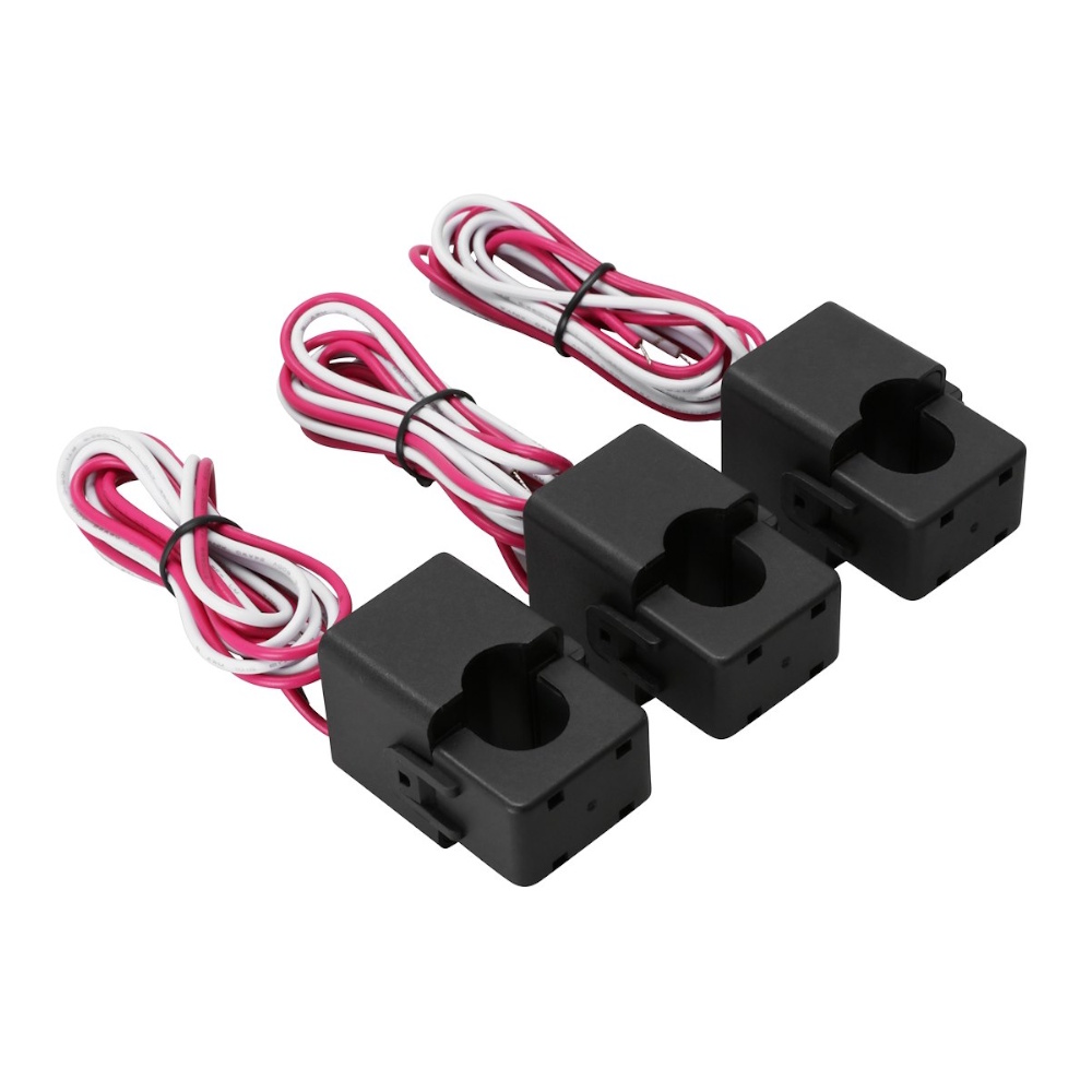 3 st strömtransformatorer med kabel för 100A. Används tillsammans med lastbalanseraren 9909007.