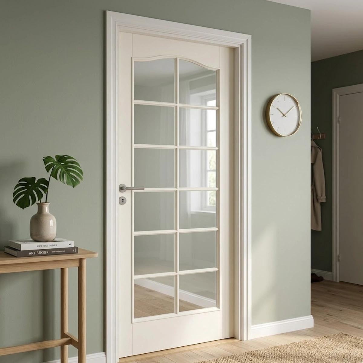 - Klassisk design: Med 12 eleganta glasöppningar i klarglas får du ett fantastiskt ljusinsläpp samtidigt som dörren behåller sin tidlösa karaktär.