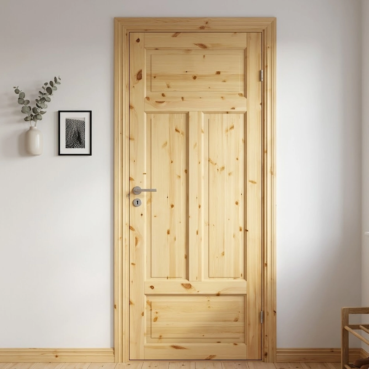 - Smidigt underhåll: Klarlacken fungerar som ett skyddande lager som bevarar furuns naturliga lyster och gör dörren enkel att hålla fin över tid.