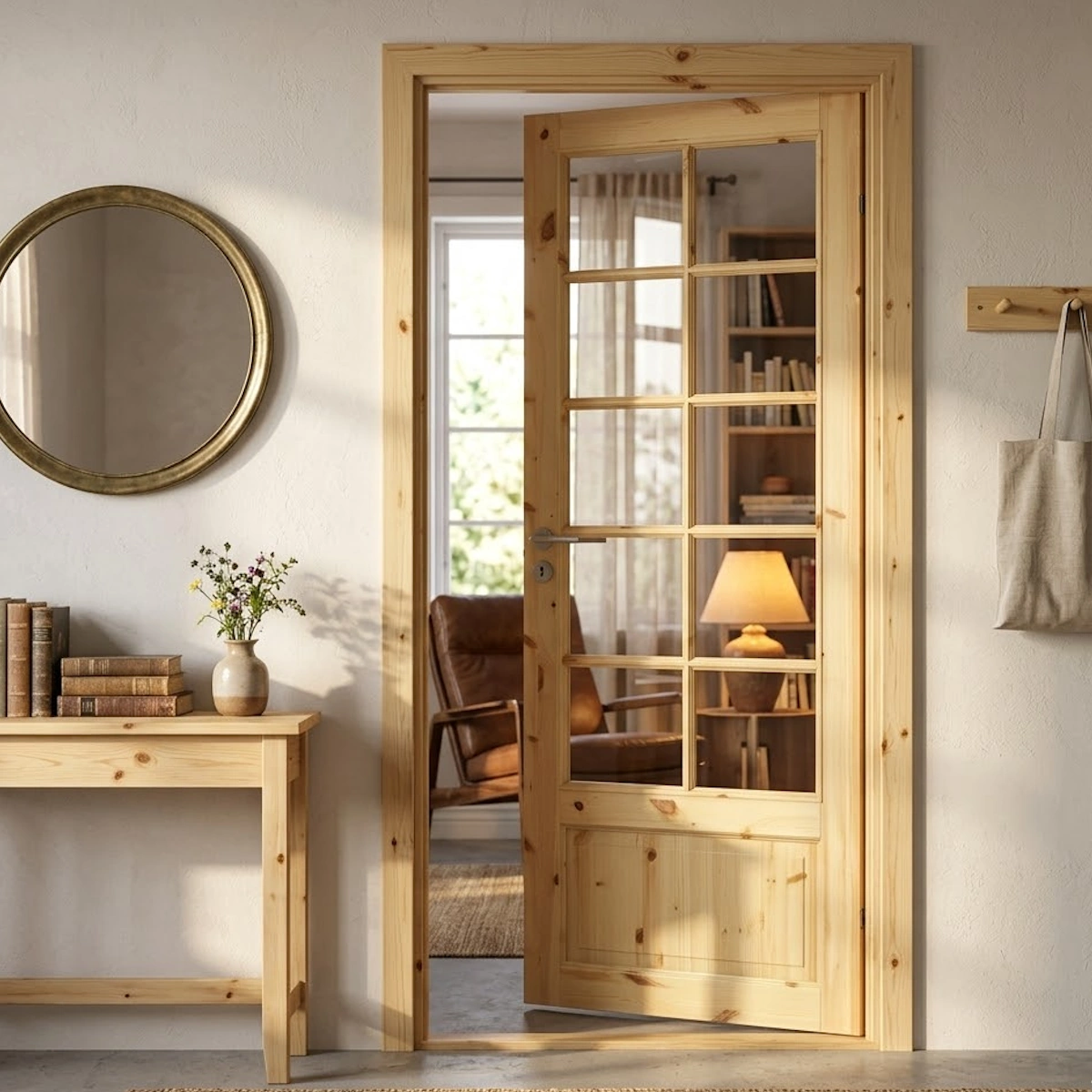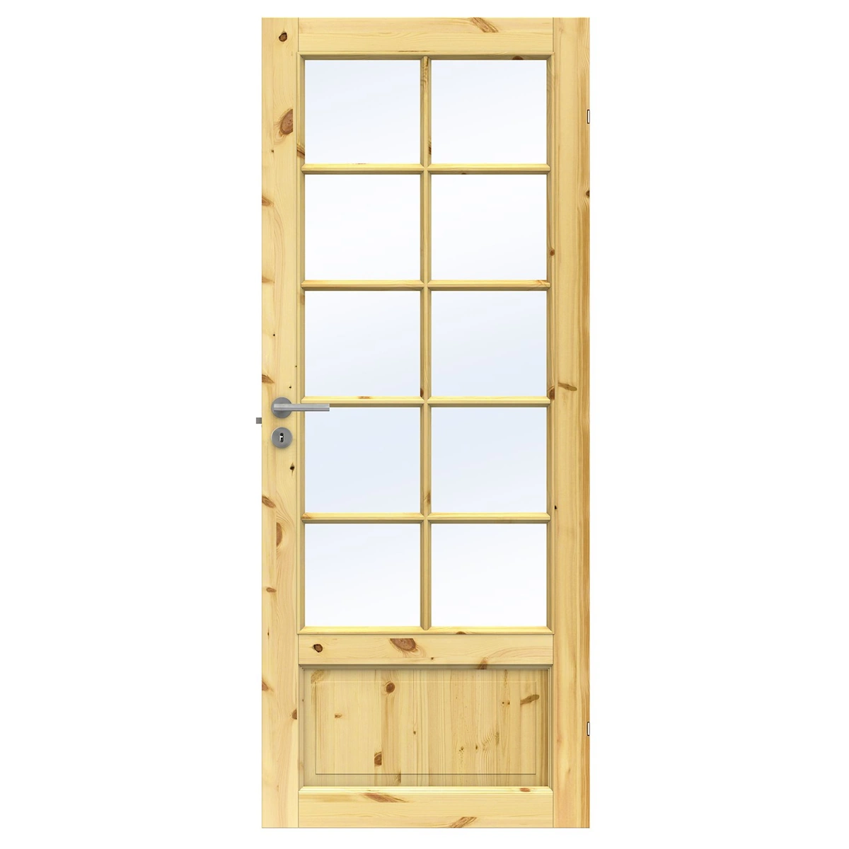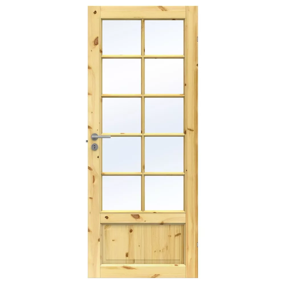 Tradition SP10 förenar traditionell estetik med en robust konstruktion. Med tio eleganta glasöppningar i klarglas sprider dörren ett generöst ljusflöde mellan rummen, samtidigt som det massiva träet ger en gedigen kvalitetskänsla som varar över tid.