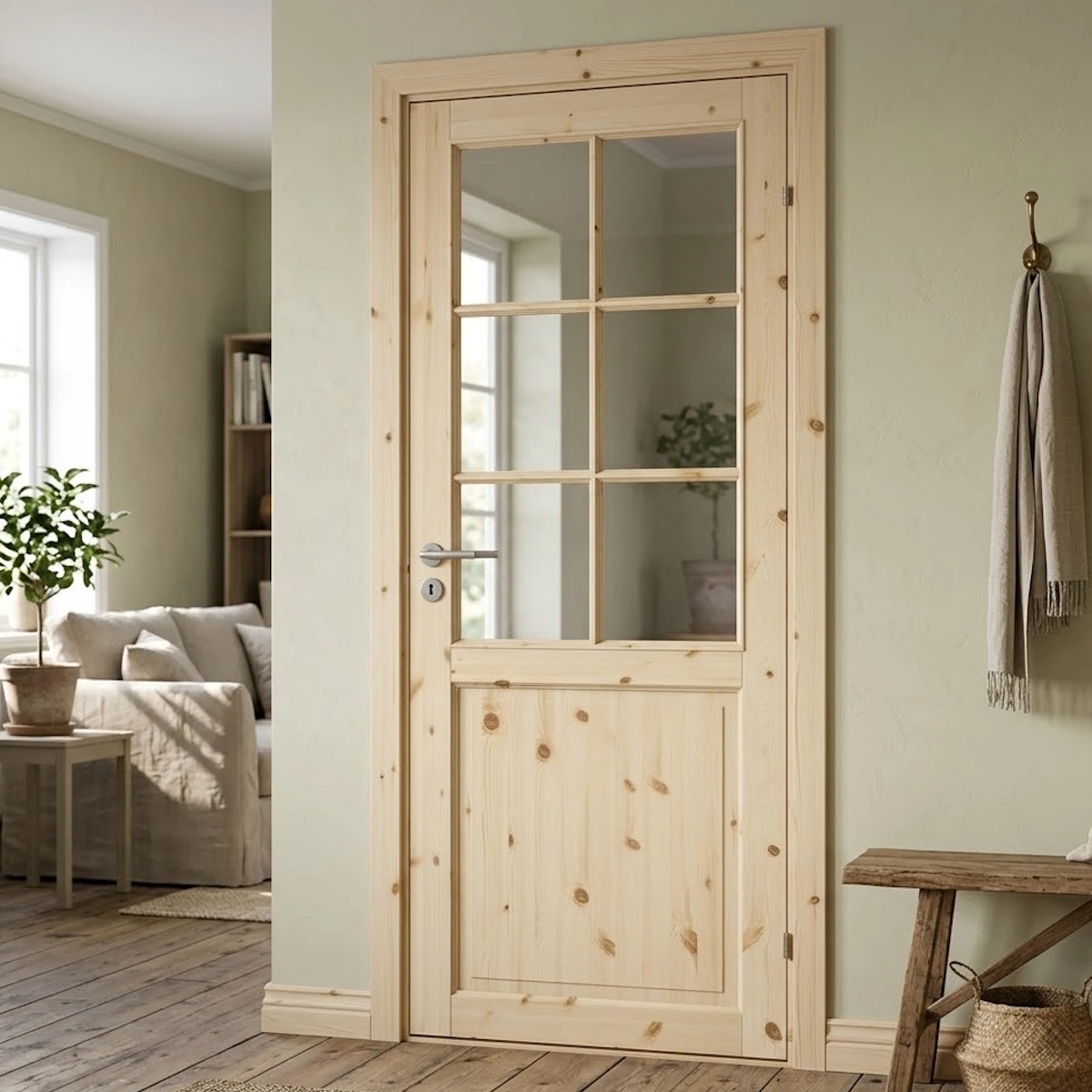 Swedoor Tradition SP6 Allmoge Obehandlad Massiv Furu Innerdörr Med 6 Glassektioner (Med Tillval)