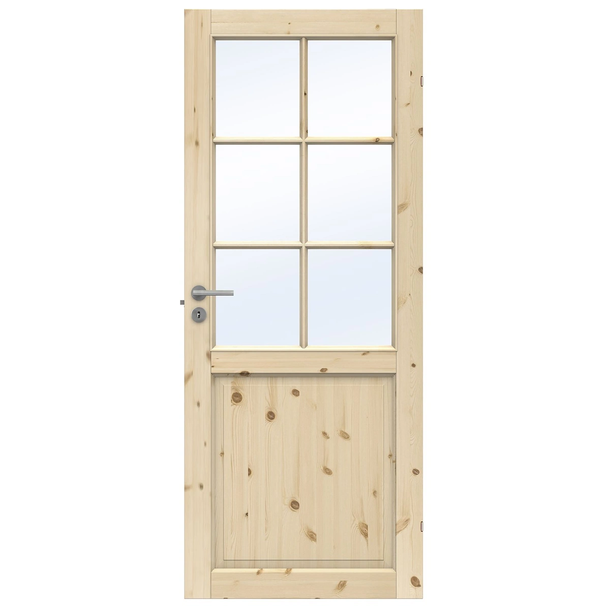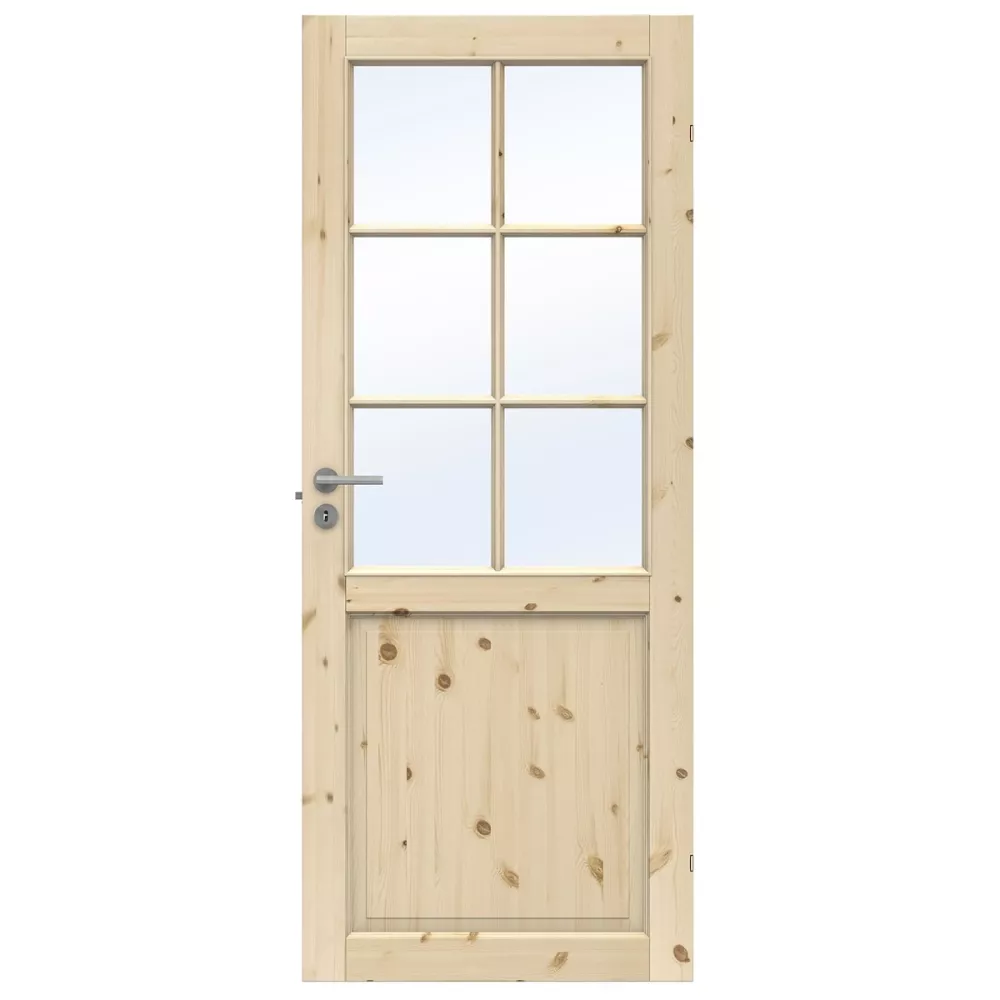 Tradition SP6 är en gedigen innerdörr i massiv furu som för in naturens lugn och ljus i ditt hem. Denna dörr från Clever-line serien kännetecknas av sin tidlösa design där träets naturliga detaljer, såsom kvistar och årsringar, får ta plats. Med sex vackra rutor i klarglas skapar dörren en öppen och luftig känsla samtidigt som den bidrar till en varm, rustik atmosfär.