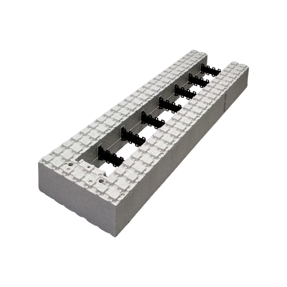 Bewi Thermomur 350 består av formsatta element av Jackopor® (EPS) och ger en färdig vägg med dubbelsidig isolering.