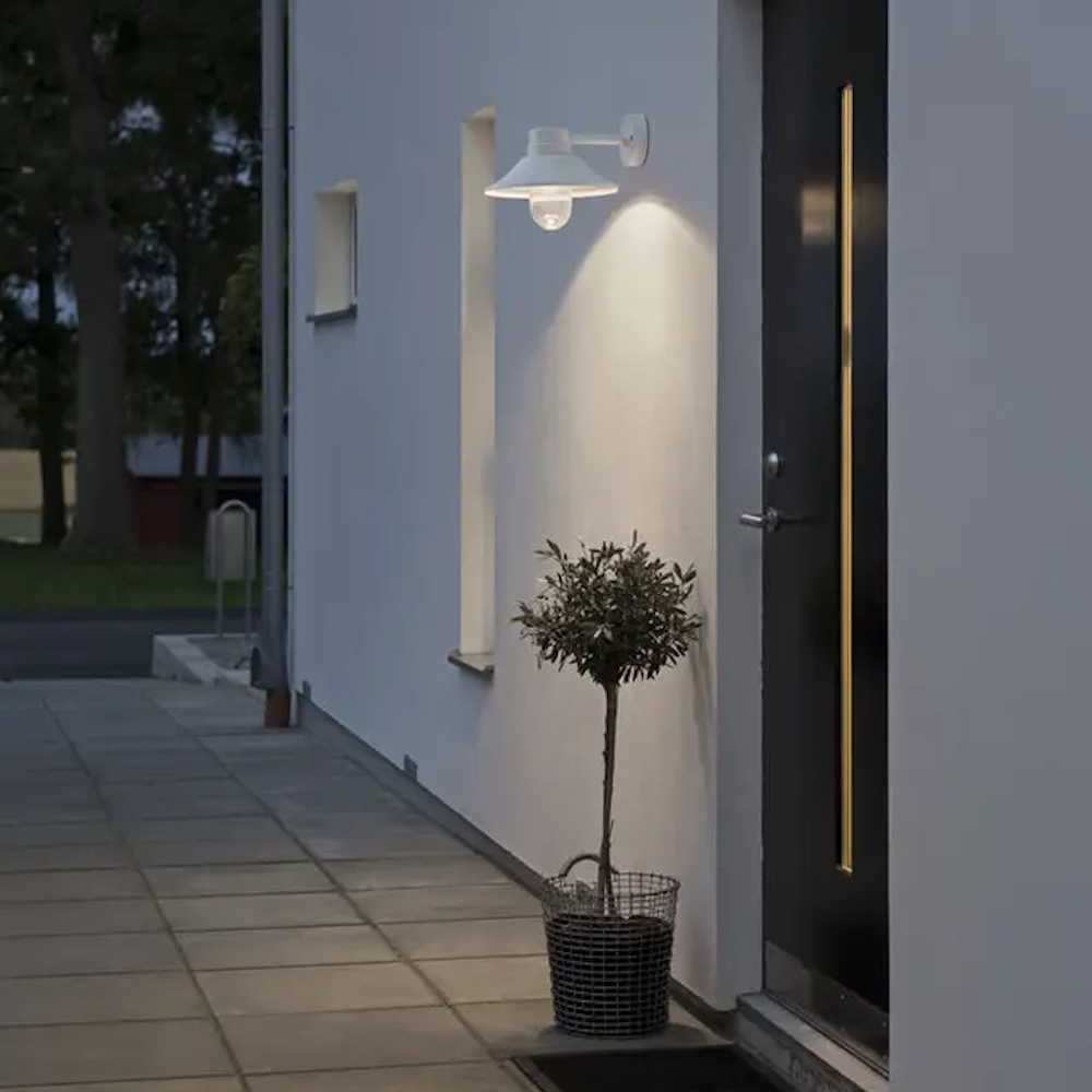 Vega fasadbelysning med rak arm i den populära Vega-serien. Lackad vit aluminium. Inbyggd 8 Watt high power LED som även är dimbar.